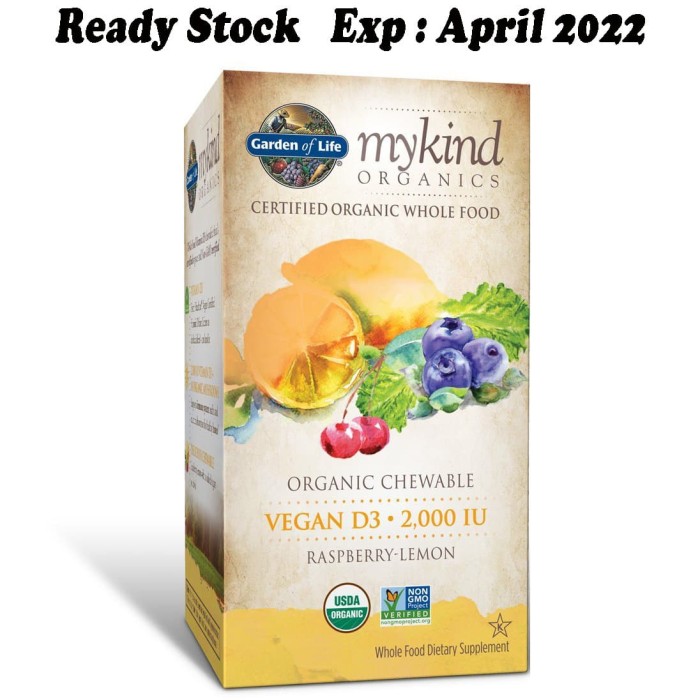 Jual Garden of Life Vitamin Code Vit D3 2000 IU 60 Veg Raw Vit d3 2000 USA dengan harga Rp450000 dari toko online Herba Cycle Jakarta Pusat. Cari produk Vitamin Nutrisi lainnya di Tokopedia. Garden of Life mykind Organics Vegan D3 is a delicious raspberry-lemon whole food vegan vitamin D3 chewable that is both Certified USDA Organic and Non-GMO Project Verified.
